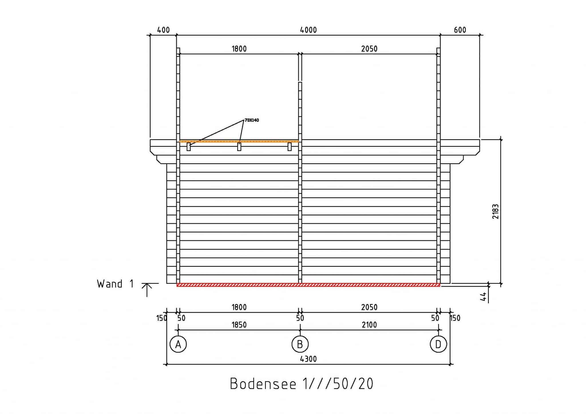 - 50 mm oder 70 mm Blockbohlenwände mit doppelt Nut und Feder