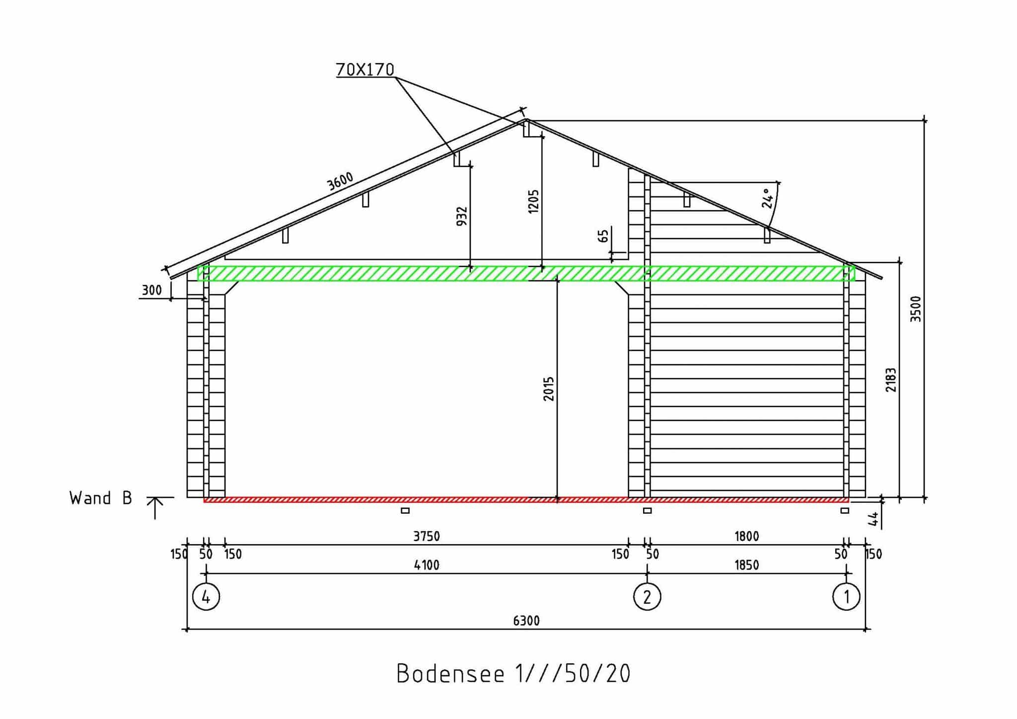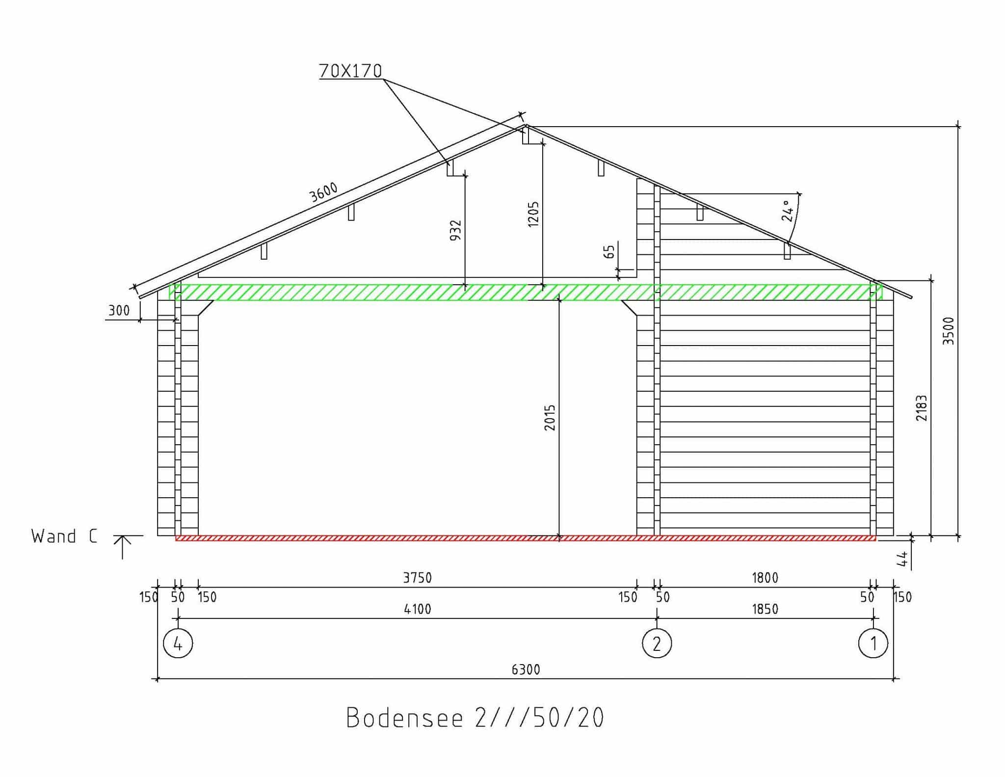 - 3,50 m Firsthöhe, 2,18 m Seitenwandhöhe