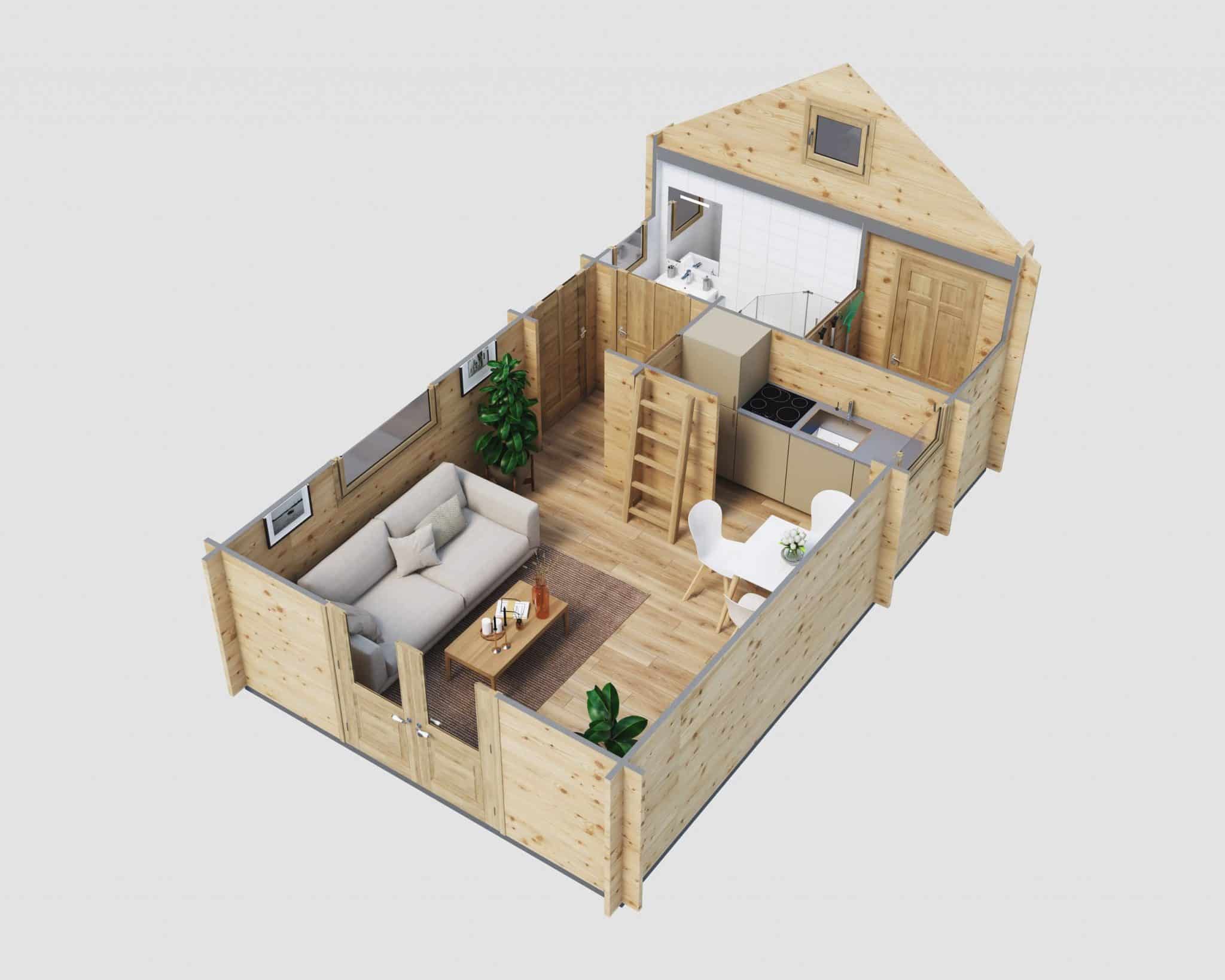 Das Gardasee Schlafbodenhaus ist in vielen Großstädten wie Berlin und Hamburg als Gartenhütte in Kleingärten sehr gefragt. Dank seiner durchdachten Raumaufteilung und dem eingebauten Geräteraum ist es sehr praktisch. Der Geräteraum kann nur von außen betreten werden, was in vielen Gärten vorgeschrieben ist. Das Modell Gardasee II bietet noch mehr Platz für Werkzeuge. Dieses Haus ist nicht nur für Gartenliebhaber geeignet, sondern auch als Gäste-, Wochenend- oder Ferienhaus. Mit einem zusätzlichen Schlafboden bietet das 24 m² Haus mehr Platz zum Schlafen oder Lagern.