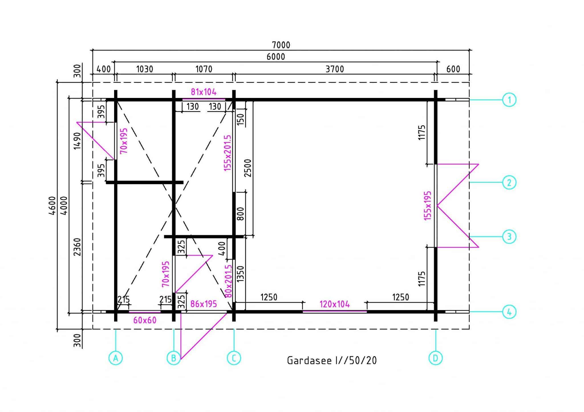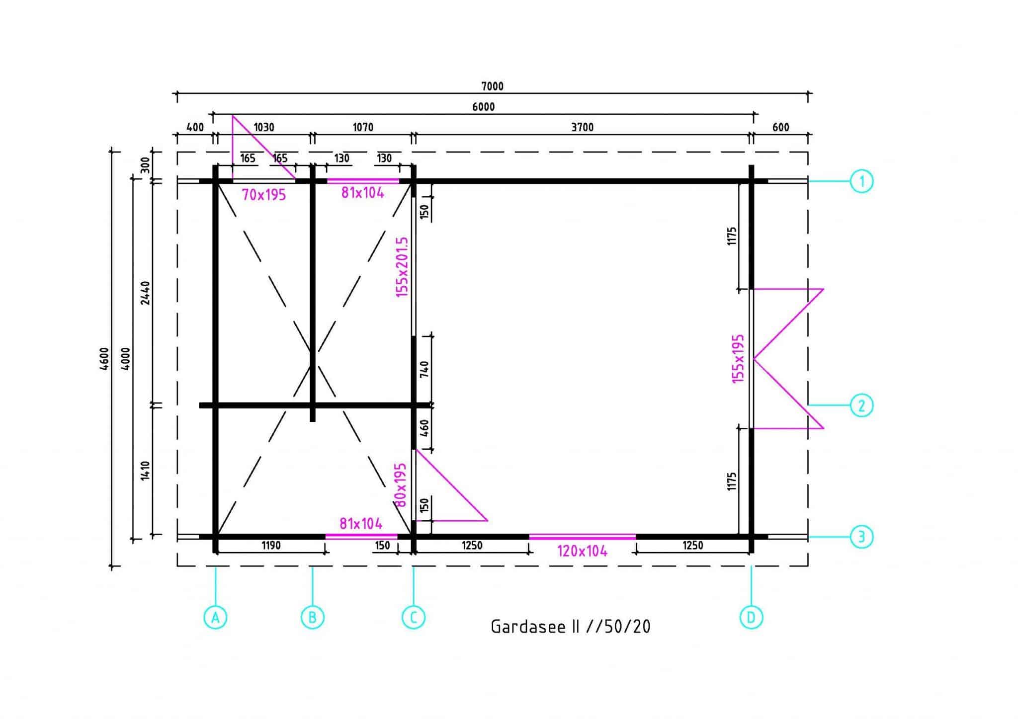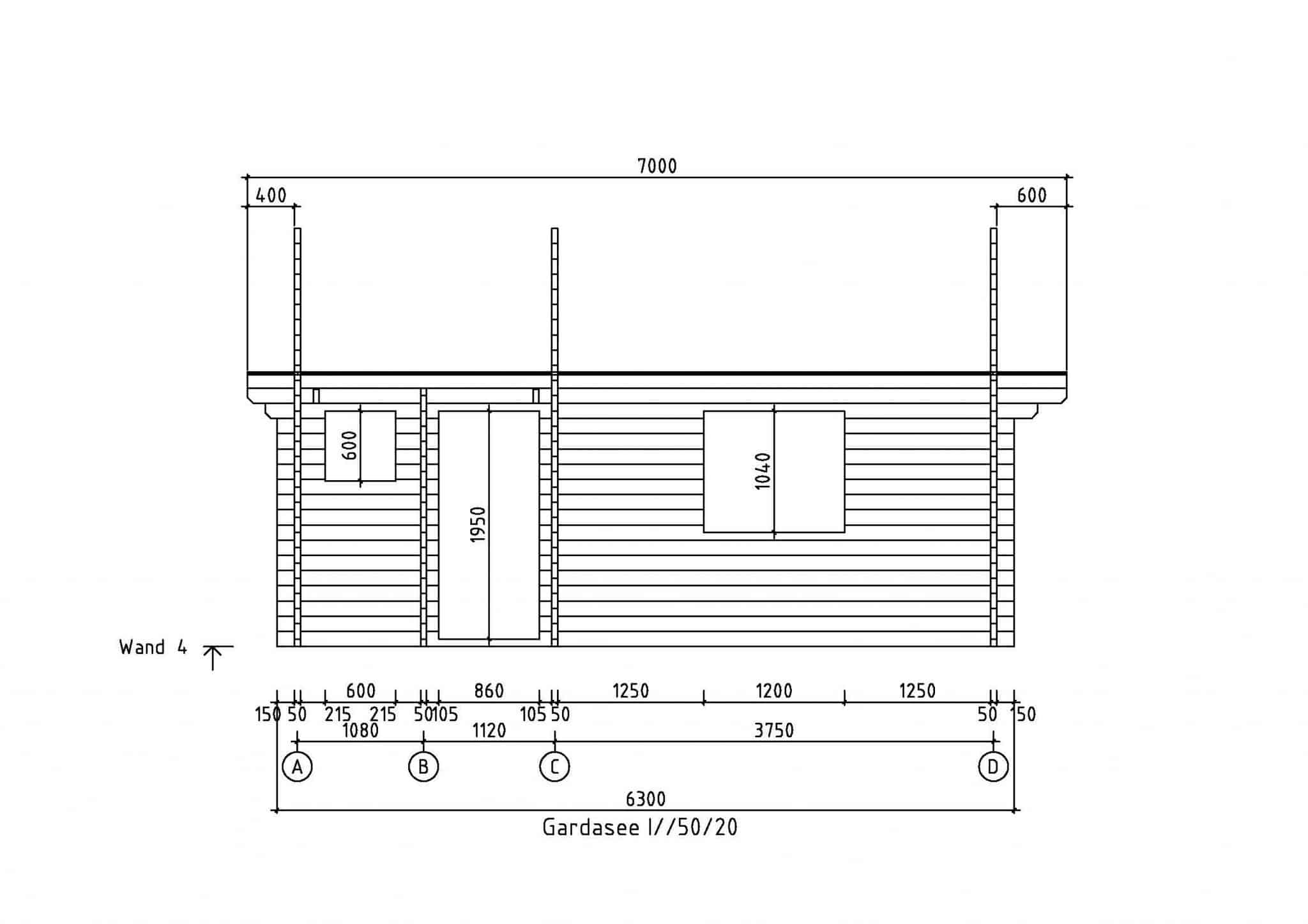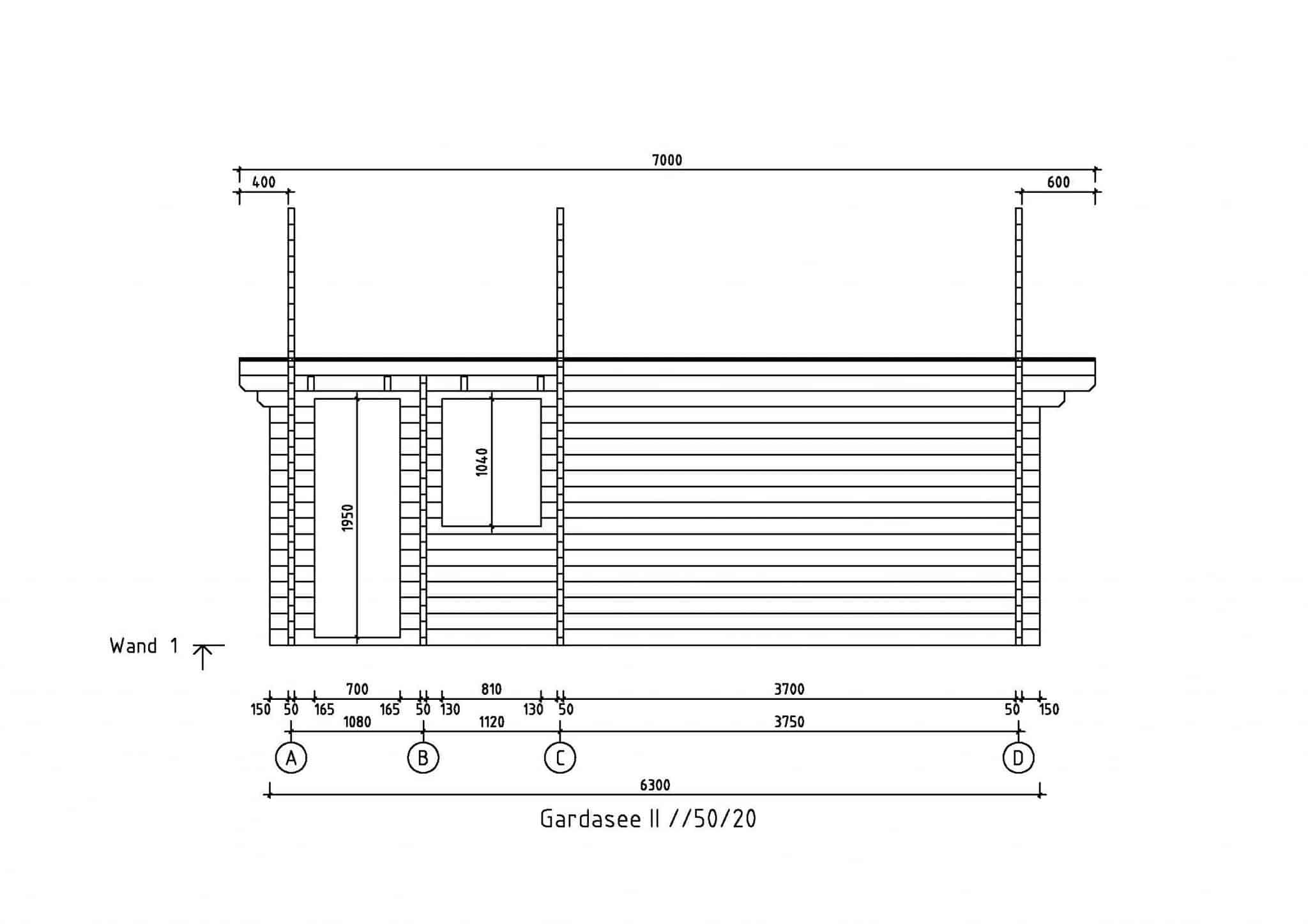 - 50 oder 70 mm Blockbohlenwände mit doppelt Nut und Feder