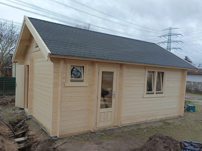 Die angegebenen Kosten sind für Barzahlungen und beinhalten 19 % MwSt. Sie haben die Option, Montagekosten hinzuzufügen, oder Sie können die Häuser auch ohne Montage erwerben. Im Bausatzpreis sind Deko-Elemente, Dachmaterial und Montagezubehör nicht inbegriffen. Einige der gezeigten Häuser sind möglicherweise Sondermodelle und können je nach Design von den Standardmodellen abweichen. Einige Blockhäuser haben Farbanstriche, die nicht im Lieferumfang enthalten sind. Die angegebenen Maße sind ungefähre Werte, und es können Änderungen vorgenommen werden.
