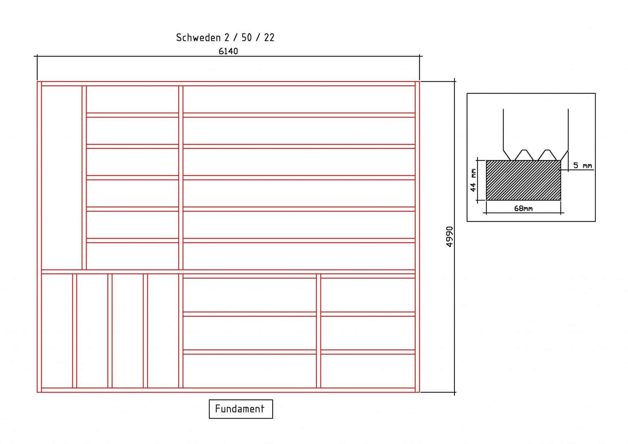 - Grundrahmen und Fußbodenträger 68 x 44